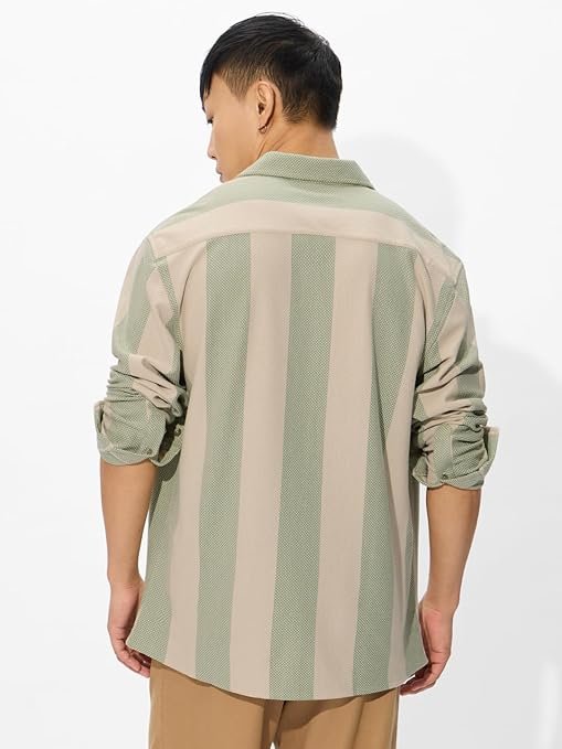 The Souled Store Stripes: Sage Men and Boys Long Sleeves Collared Neck Button Front Regular Fit Cotton Blend Shirts